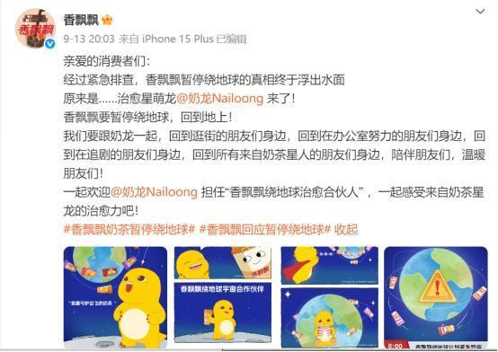 观点网今月,香飘飘在其官方微博发布了一则“暂停绕地球”的紧急公告,但实际上,这并非品牌传播遇到危机,而是一场精心策划的预告。在众多不解的声音中,该品牌随后正式宣布与热门IP“奶龙”的合作,并表示“要暂停绕地球,回到地上!”